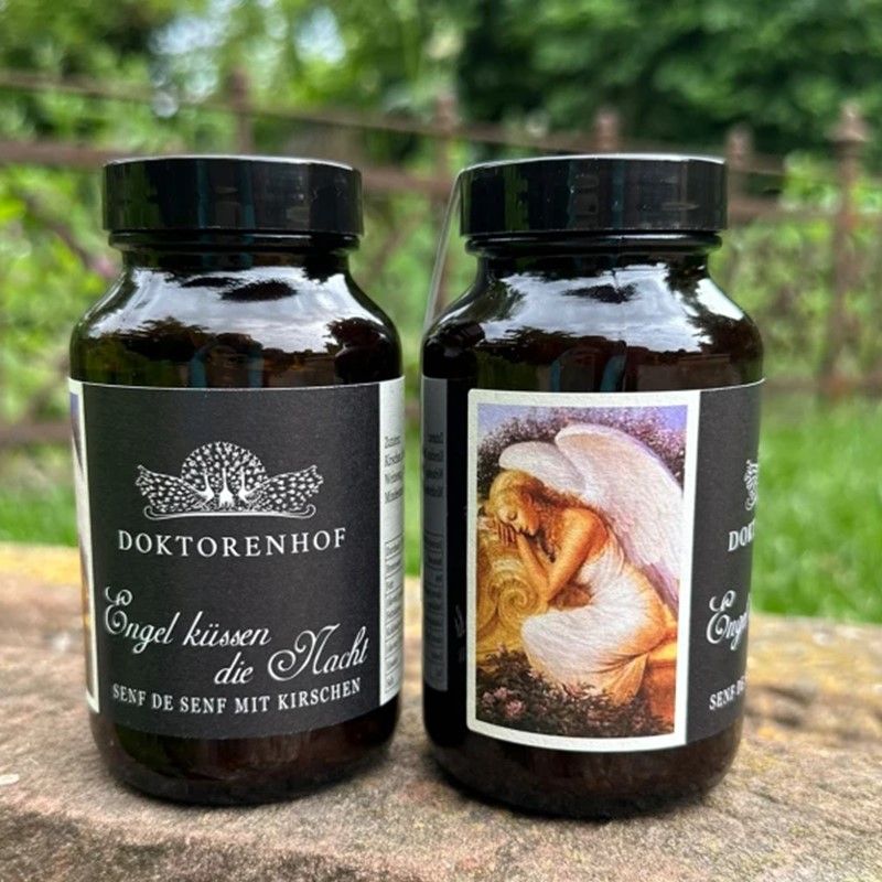 "Das Wort „Engel“ ist dem griechischen „angelos“ entsprechend, was „Bote“ oder „Gesandter“ bedeutet. Im Altägyptischen bedeutet Engel „Gottes Licht“, die Brücke zur Freiheit. In den meisten Religionen existieren Boten zwischen Himmel und Erde. In der Mythologie der Kelten waren die Boten der Götter Tiere. Es sind die Engel, die uns tragen und begleiten. Ihr Schutz hilft uns so, oft schwierige Zeiten besser zu überstehen. Ich freue mich, einen Schutzengel zu haben. Aus diesem Anlass heraus und aus der Tatsache, dass es die guten Engel sind, die mit uns gehen, haben wir einen neuen Essig kreiert, der den poetischen Namen „Engel küssen die Nacht“ trägt. Wilde Kirschen, Aprikosen, Feigen und Vanille sind die balsamischen Grundessenzen, die den feinen und über 6 Jahre alten Essig im Barriquefass küssen. Eine weiche, voluminöse und überaus elegante Weise, sich bei unseren Engeln zu bedanken. Pur getrunken als Aperitif, eingebunden in frischen Säften – zu Süßspeisen, Käse, Eis und zu Obstsalaten sowie Torten – ist „Engel küssen die Nacht“ eine himmlische Gabe. Ein Aperitifessig der Extraklasse!